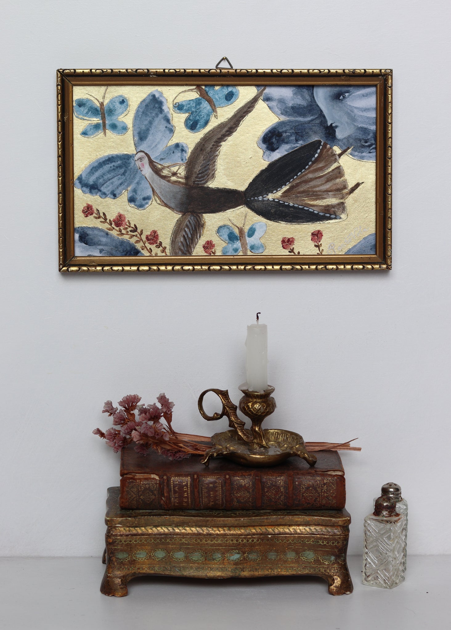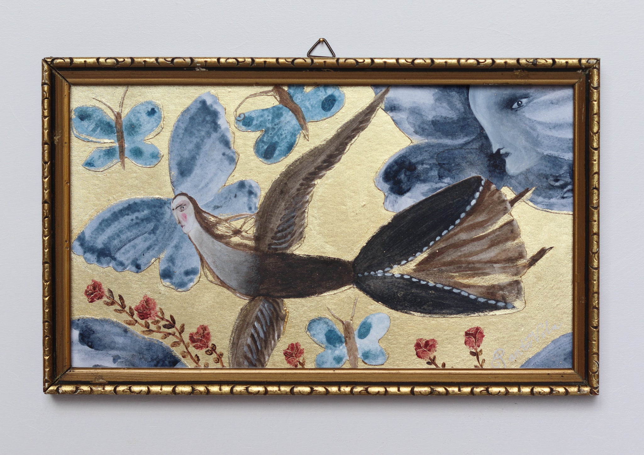 Handpainted and handcut 'collage' on luminous gold paper.