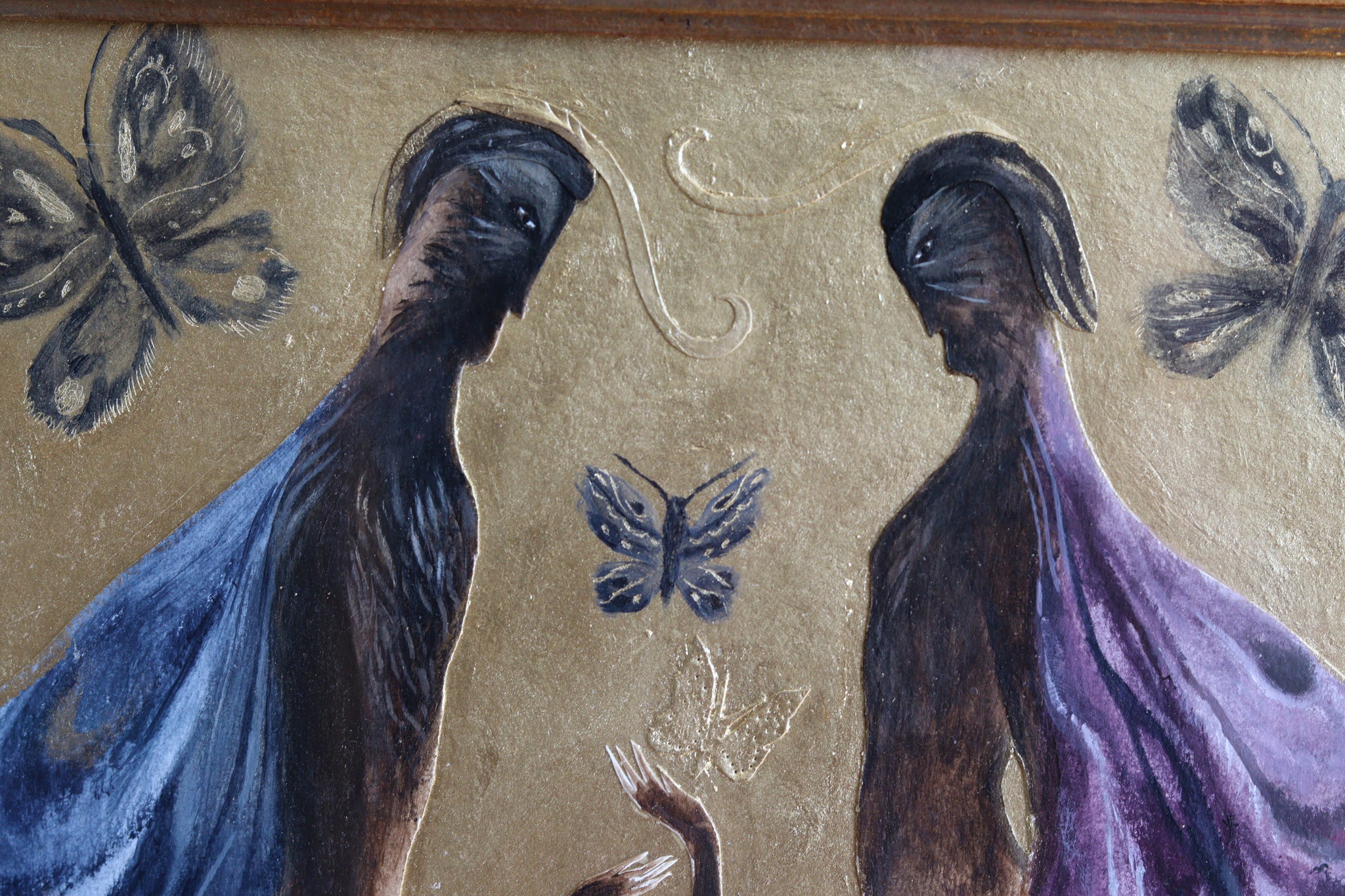 A hand painted and finely hand cut paper artwork on 300 gsm hot pressed paper painted on rich gold.